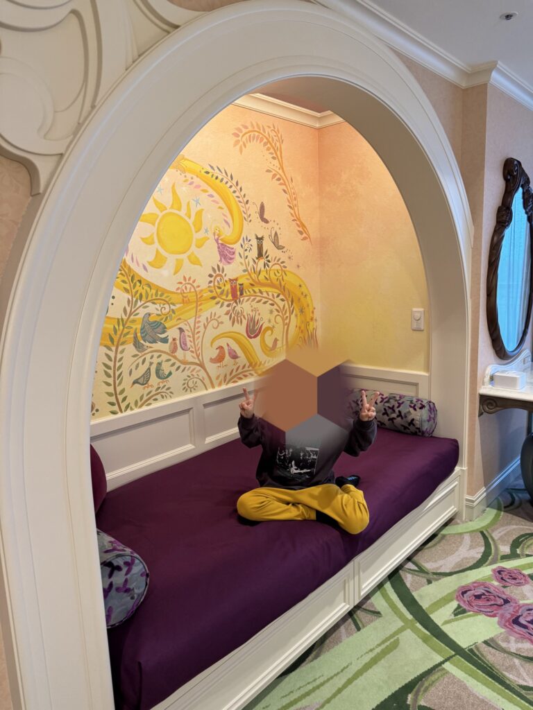 ファンタジーシャトーでアルコーヴベッドがあるバルコニールームは、スプリングサイドの6階と7階に1部屋ずつのみで、今回みかん家族は7階にアサインしていただきました。