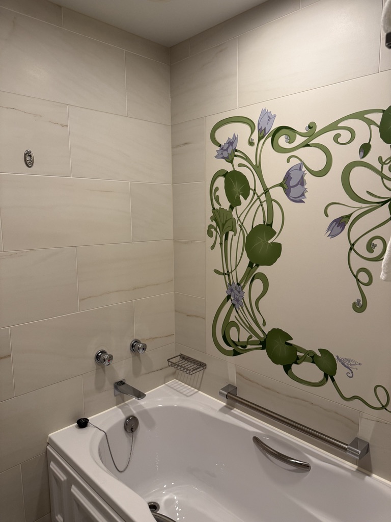 お風呂の扉も可愛く、お風呂の広さもちょうど良かったです。