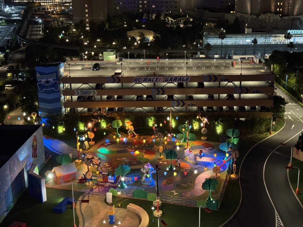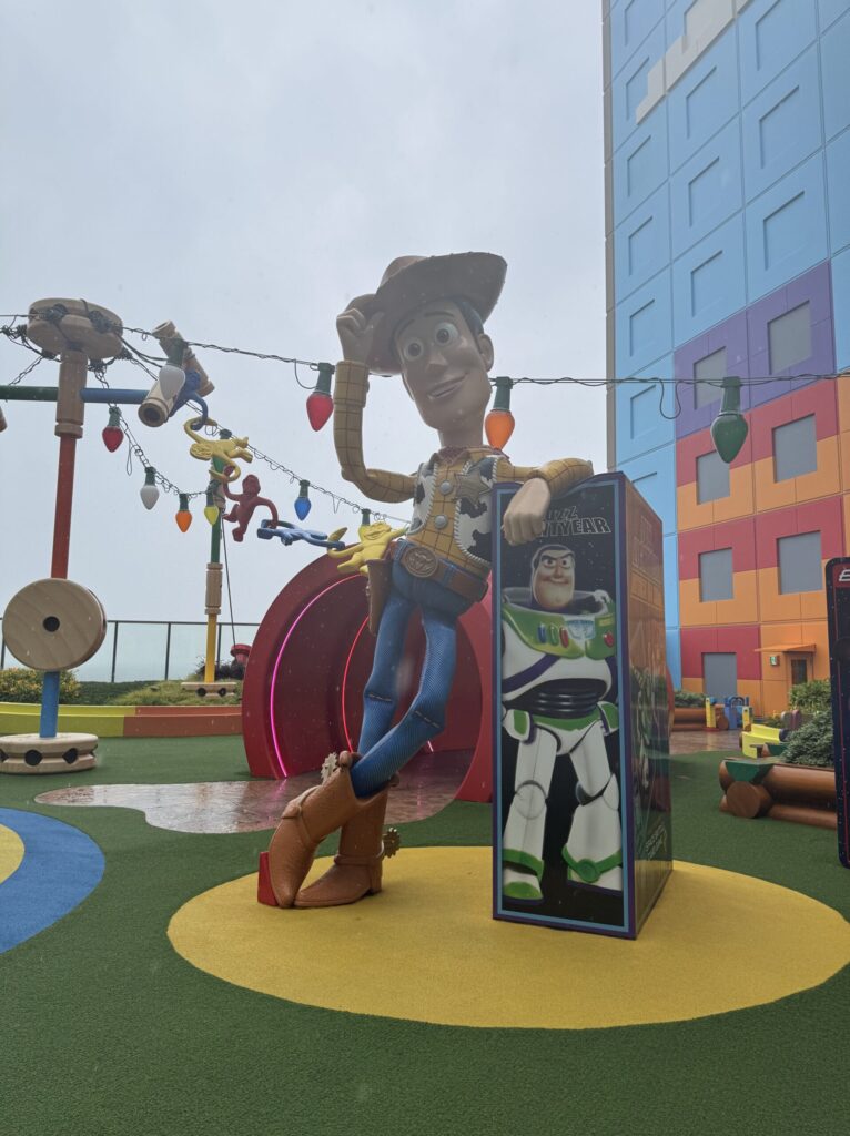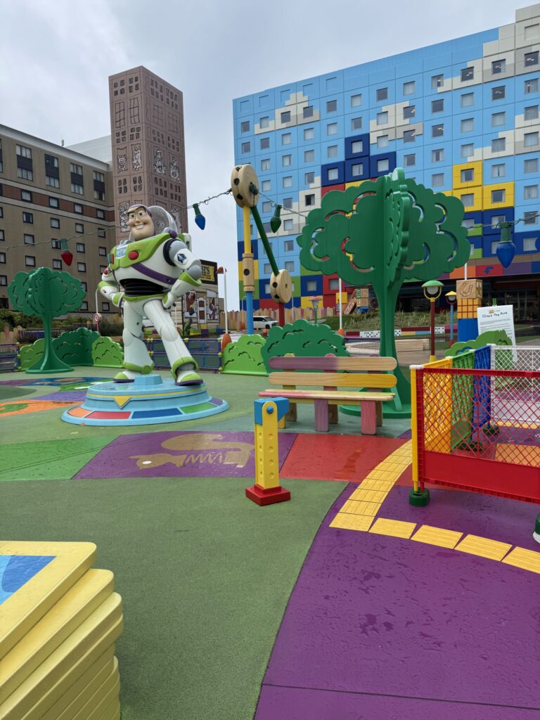 ホテルのエントランス正面に広がる広場で、ゲームボードをイメージしており、バズ・ライトイヤーやジェシーのキャラクター像がある広場になっています。