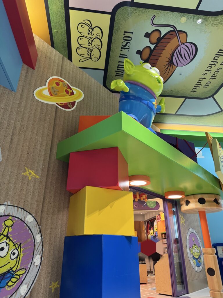 ロビーを抜けた先にある中庭で、ウッディやボー・ピープのほか、さまざまなおもちゃのキャラクター像がある楽しい中庭です。