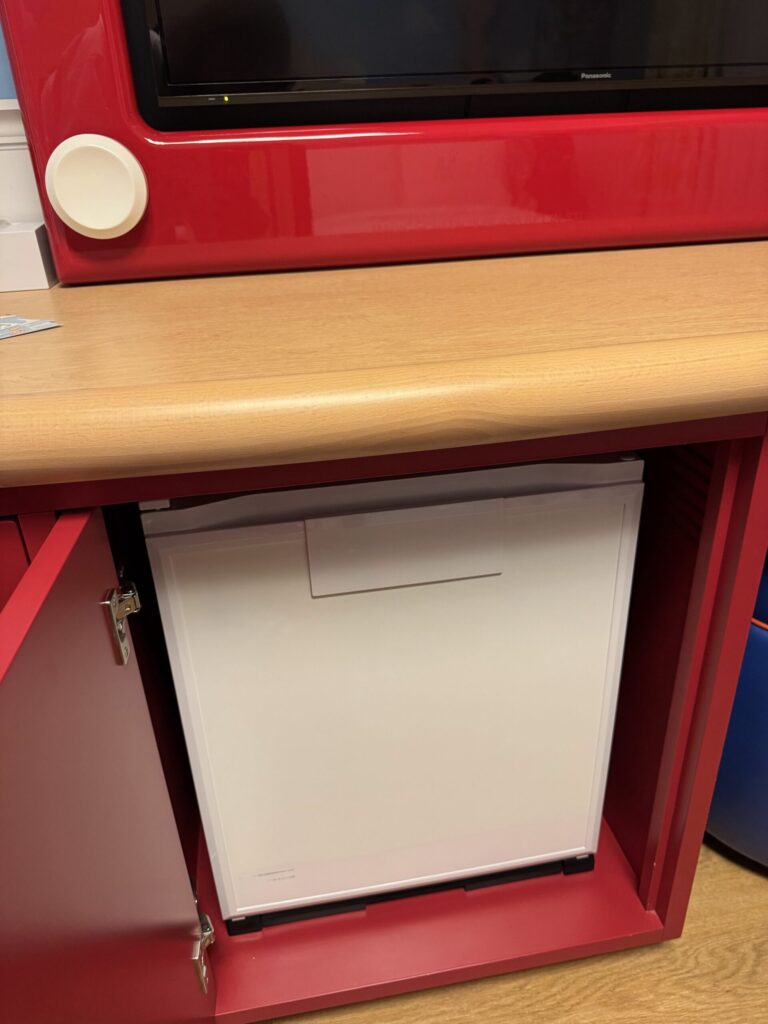 そしてテレビの下には冷蔵庫があがりテレビの横には電気ケトルなどが置いてくれていました。