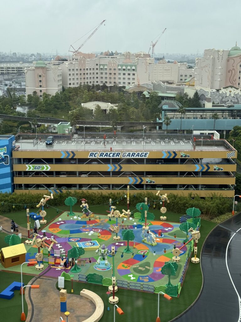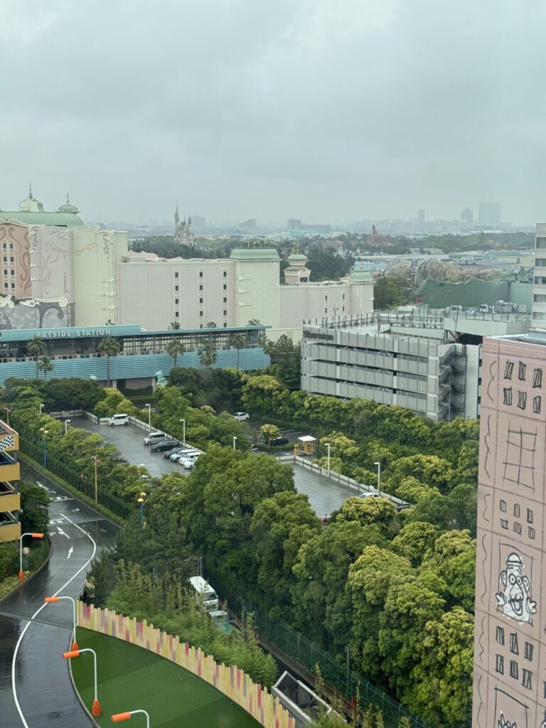 今回宿泊したお部屋からの景色はスリンキー・ドッグパークの前のお部屋だったのでスリンキー・ドッグパークを見下ろすことができました。