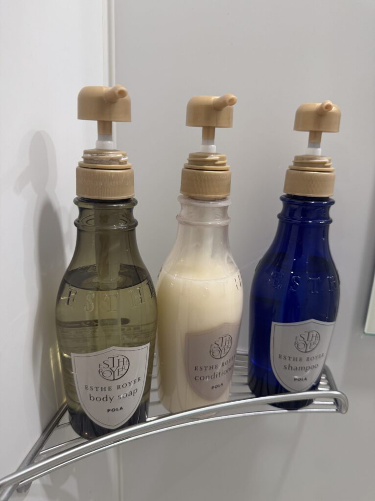 お風呂にはシャンプー、コンディショナー、ボディーソープがありました。
