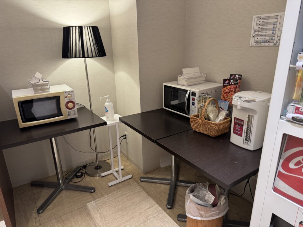 そしてレンジはロビーにあるのでご飯を温めたい場合は、ここで温めてからお部屋に戻るのが良さそうです。