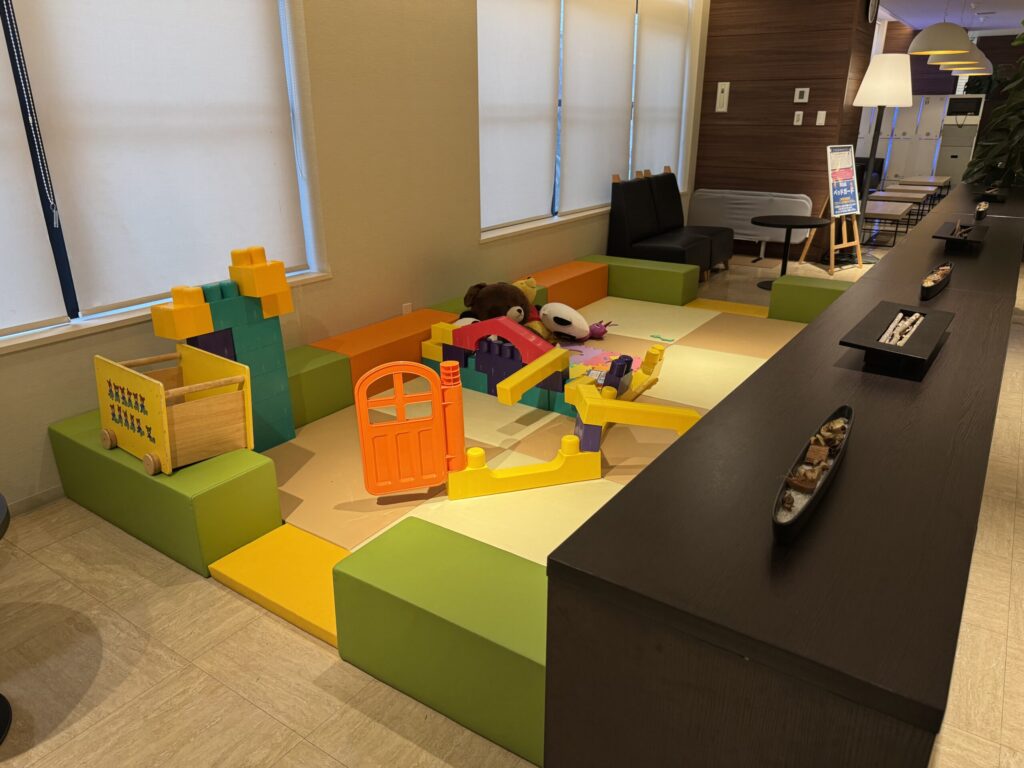 ロビーには、机と椅子があり、キッズスペースもありました。