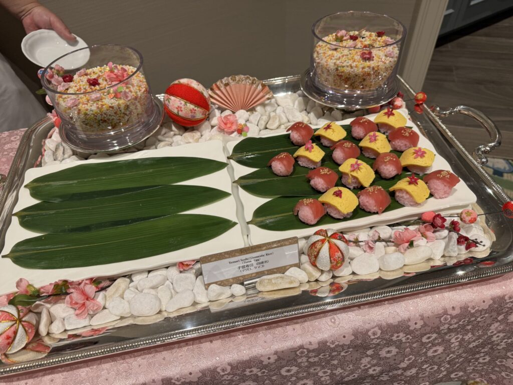 そして今回行ったのが3月3日のひな祭りの日だったので特別メニューの手毬寿司をキャストさんが配っていたので並びに行きました。