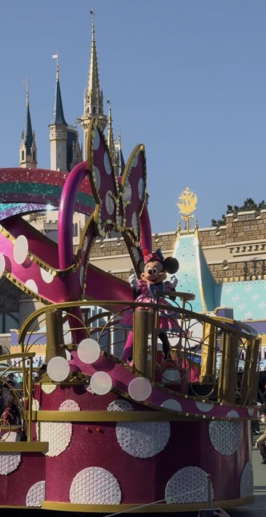 主人公のミニーをはじめたくさんのキャラクターが登場するカラフルで華やかなパレードでとってもハッピーな気持ちになるのです♥️