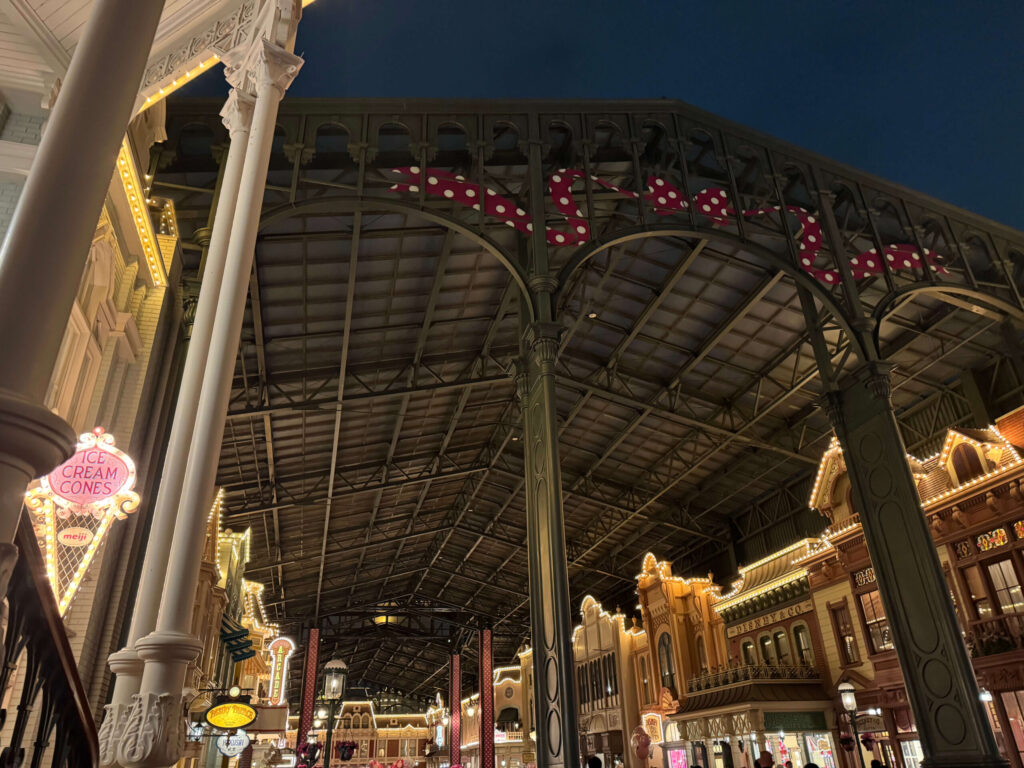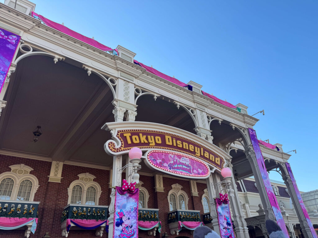 入園するとちょうどこのとき開催していたイベントの「ディズニー・パルパルーザ “ミニーのファンダーランド”」の装飾が♥️