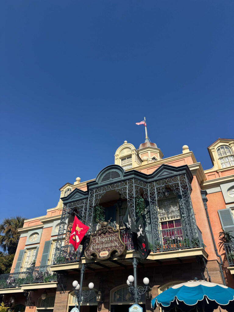 チュロスが食べ終わったっので、そのまま近くのカリブの海賊へ。ほぼ待ち時間なしでスムーズに乗れました!暗くて涼しい船旅は、歩き疲れた足を休める絶好のタイミングでもありますよね。