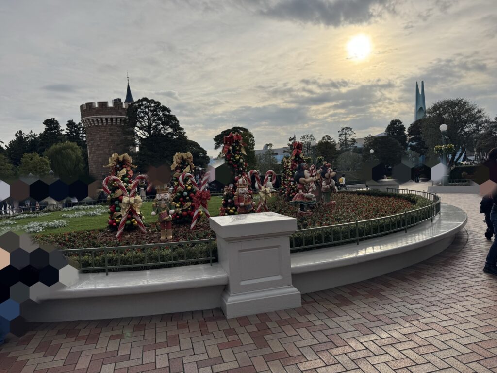 私が行った日はハロウィンとクリスマスの間で、11月11日から「ディズニー・クリスマス」が始まるので、クリスマスの装飾がされていました。